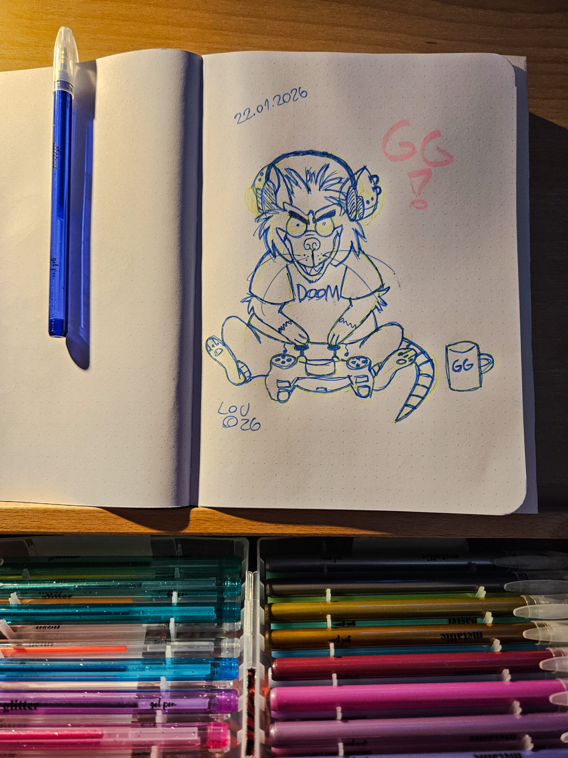 W bullet journalu rysuję proste szkice, ogólnie robię to w ramach ćwiczenia – chciałabym mieć pewniejszą rękę, a wiadomo, że tradycyjne techniki wymagają więcej uwagi, niż cyfrowe. Na razie próbuję różnych rzeczy i różnych cienkopisów – przede mną jeszcze do wypróbowania te kolorowe (kupione za całe 19 zł w Auchanie).